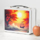 Diese Lunchbox hat ein Schiff bei Sonnenuntergang darauf.