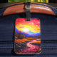 Dieser Gepäckanhänger hat ein Sonnenuntergangsbild darauf.
