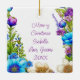 Personalisierte Weihnachtsschmuck. Eine wunderschöne siamesische Katze mit blauen Augen in blauen und rosa Blume ist eine Kunst im Aquarell-Stil.