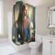 Dieser Duschvorhang hat eine KI-Frau, die darauf abgebildet ist.