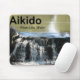 " Aikido: Fließen Sie wie Wasser" über einem Bild des flüssigen Wassers.