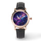 Uhr, Klassische Damenuhr mit schwarzen Lederarmband