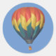 Dieser Heißluftballon heißt Air Flambe. Die hellen Farben werden auf einem himmelblauen Hintergrund auf diesem Aufkleber angezeigt.