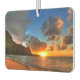 Die Frische der Luft wird mit einem Foto von einem schönen tropischen Sonnenuntergang und einem Duft von tropischer Brise gezeigt. Passen Sie dieses Objekt an oder kaufen Sie, wie es ist.