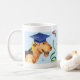 Herzlichen Glückwunsch an Ihren Lieblings-Absolvent mit einem Geschenk mit einem glücklichen Airedale Terrier Absolvent mit einem Mörtel inmitten einer Flasche Konfetti.