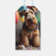Airedale Hund mit Kuchen und Ballons Geschenkanhänger