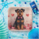 Hunde sitzen hübsch zwischen Rosa und rote Rosen, umgeben von Pastellherzen. Mit seinen klaren, modernen ästhetischen und sanften rosa Farbtönen ist dieses Design perfekt für die Wärme und Zuneigung am Valentinstag.