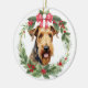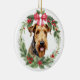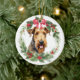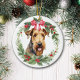 Airedale Terrier Dog Red Bow Holly Wreath Keramik Ornament