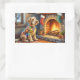 Airedale Terrier Fireplace Christmas Lights Rechteckiger Aufkleber