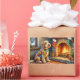 This festive Christmas illustration features a cheerful Airedale Terrace sitting beside a glowing fireplace, wrapped in colorful Christmas lights with stockings hanging overhead. The Airedale’s wiry coat and bright, intelligent expression bring added warmth and charm to this cozy holiday scene. Perfect for Airedale lovers, seasonal décor fans, and Zazzle shoppers looking for unique Christmas artwork celebrating their favorite terrier breed.