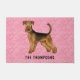 Airedale Terrier Hund mit rosa Herzen und Name Fußmatte