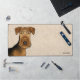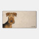 Desteis originelle Cartoon-Illustration eines bezaubernden Airedale Terrier Rasse Hundes. Die Hintergrundfarbe ist beige mit einer dekorativen Textur. Die Hintergrundfarbe kann auf eine andere Farbe geändert werden und die Textur kann entfernt werden, wenn dies gewünscht ist. Es gibt auch einen personalisierbaren Textbereich für einen Namen oder einen anderen benutzerdefinierten Text.