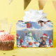 Eine herzliche Ferienillustrierung mit einem fröhlichen Hund, der im Schnee spielt, eine Weihnachtsmannmütze trägt und von bunten Geschenkboxen umgeben ist. Im Hintergrund bauen die Kinder neben einem schneebedeckten Weihnachtsbaum einen Schneemann und schaffen so ein fröhliches Winterwunderland. Ideal, um Feiertagssjubeln zu verbreiten und den Zauber von Weihnachten zu erfassen.