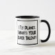 Ein lustiger Slogan auf einer Zwei-Tone-Tasse, der sagt: "Ich fliege Flugzeug. Was ist IHR super Talent?" Zwei Tone-Tasse für einen Airline-Pilot. Schwarzweißtext.