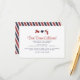 Eine Empfang-Karte, die mit der "Airmail" Invitation Suite koordiniert wird. In den Tönen der Marine und Rot. Platz zum Drucken der Empfang-Details auf der Vorderseite, mit einem dekorativen diagonalen Streifen Muster auf der Rückseite. Bei Bedarf kann das Muster entfernt und auf der Rückseite ein zusätzlicher Text gedruckt werden.