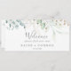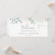 Dieser luftige, an Sitzplätzen hängende Willkommenskopf eignet sich perfekt für eine moderne Hochzeit. Das elegante botanische Design besticht durch helle und luftige Eukalyptusfarben in Aquarellfarbe, die mit skurrilen goldenen Glitzer-Blätter besticht. Die Karte druckt auf der Vorder- und Rückseite (beidseitig). Bitte Karo der Auflistung für die koordinierenden Tischnummer-Kartenkarten.