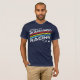 akamundo Vintager fördernder T - Shirt für das quasi-fiktive laufende Team. Vintages Auto, Sterne, Streifen. Farben umfassen Rotes, Blaues, Gelbes und Weiß. Behalten Sie es alte Schule cool mit diesem Schmierenentwurf!