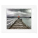 Am reinigensten Tag in New Zealand, auf der Südinsel, kamen wir in der französischen Provinzstadt Akaroa an. Der Jetty ragt in das stille Wasser des Sees, unter den Wolken - die einzige Farbe, die zu sehen war, war das schöne Ziegeldach der Hütte.
