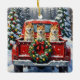 Celebrate the holiday season with this majestic Akita Christmas design! This dignified scene features three powerful, thick-coated Akitas sitting alertly in the back of a classic red pickup truck, perfectly suited for the beautiful snowy winter forest setting. The vintage truck is adorned with a vibrant Christmas wreath, twinkling with red and gold ornaments and warm, glowing lights. Abundant snowflakes fall around the scene, truly creating a winter wonderland. With a decorated Christmas tree in the background, this design is perfect for capturing the joyful spirit of the holidays and makes an excellent Christmas gift for any Akita owner, dog lover, or admirer of festive and magnificent dog art.