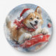 Akita Dog in Sledge Lass es Schnee Weihnachten Pappteller