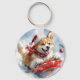Akita Dog in Sledge Lass es Schnee Weihnachten Schlüsselanhänger