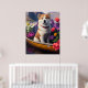 Akita Dog on a Paddle: Ein Landschaftliches Abente Poster