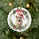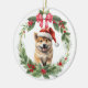 Akita Puppy Dog Red Bow Holly Wreath Keramik Ornament