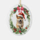 Dieses hübsche Holiday-Ornament zeigt ein Portrait eines bezaubernden Hundes von Akita. Der Welpe ist gerahmt mit einem heiligen und roten Beerenkranz, oben mit einem kräftigen roten Bogen. Die Rückseite des Ornaments hat den gleichen roten Bugkranz, mit zwei Textfeldern, die Sie anpassen können.