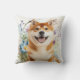 Akita Shiba Inu Dog with Blue Watercolor Flowers Kissen
