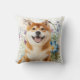 This lovely throw pillow features a sweet Shiba Inu or Akita dog sits with a watercolor wash of various blue flowers. Perfect for any dog lover to brighten up a room.