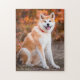Ein Puzzle mit Akita, das im Herbst sitzt.