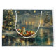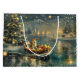 Set segelt mit dieser sehr detaillierten Abbildung in den Zauber der Urlaubssaison und zeigt einen stolzen Hund, der in einem festlich dekorierten Boot sitzt und über einen ruhigen Weihnachtssee gleitet. Die Lichter der nahen Kiefernbäume reflektieren das Wasser und warmen, festlichen Glanz, der das gemütliche Ambiente verstärkt. Die Ornamente versetzen sich von den Seiten des Bootes, während die Laternen leuchten und eine Szene schaffen, die das wahre Wesen der Weihnachtswärme und -freude einfängt. Dieses nostalgische Kunstwerk bringt eine Touch von Urlaubsmagie in jeden Raum, perfekt für diejenigen, die den Geist der Saison schätzen.