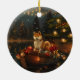 Set segelt mit dieser sehr detaillierten Abbildung in den Zauber der Urlaubssaison und zeigt einen stolzen Hund, der in einem festlich dekorierten Boot sitzt und über einen ruhigen Weihnachtssee gleitet. Die Lichter der nahen Kiefernbäume reflektieren das Wasser und warmen, festlichen Glanz, der das gemütliche Ambiente verstärkt. Die Ornamente versetzen sich von den Seiten des Bootes, während die Laternen leuchten und eine Szene schaffen, die das wahre Wesen der Weihnachtswärme und -freude einfängt. Dieses nostalgische Kunstwerk bringt eine Touch von Urlaubsmagie in jeden Raum, perfekt für diejenigen, die den Geist der Saison schätzen.