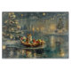 Set segelt mit dieser sehr detaillierten Abbildung in den Zauber der Urlaubssaison und zeigt einen stolzen Hund, der in einem festlich dekorierten Boot sitzt und über einen ruhigen Weihnachtssee gleitet. Die Lichter der nahen Kiefernbäume reflektieren das Wasser und warmen, festlichen Glanz, der das gemütliche Ambiente verstärkt. Die Ornamente versetzen sich von den Seiten des Bootes, während die Laternen leuchten und eine Szene schaffen, die das wahre Wesen der Weihnachtswärme und -freude einfängt. Dieses nostalgische Kunstwerk bringt eine Touch von Urlaubsmagie in jeden Raum, perfekt für diejenigen, die den Geist der Saison schätzen.