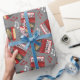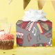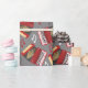 Schaffen Sie Geschenke für Ihren Lieblingsmusiker im Stil. Dieses Verpackungspapier zeichnet sich durch ein rundes Muster roter Akkordeons vor grauem Hintergrund aus, mit Musiknoten in Rot, Grau und Weiß. Es ist perfekt für Akkordeonspieler und Polka-Fans.