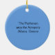 Rundschmuck mit einem Bild des herrlichen Parthenons auf der Akropolis und den Bögen des Amphitheaters Herodes Atticus unten in Athen, Griechenland. Die Rückseite ist blau mit anpassbarem Text. Sehen Sie sich die gesamte Sammlung von griechischen Ornamenten im ZUHAUSE-Bereich an.