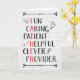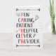 Vatertagskarte für Papa mit beschreibenden Worten, einschließlich Spaß, gekümmert, geduldig, hilfsbereit, clever, Provider, mit bestimmten Buchstaben, die "VATER" Karte ausdrücken, hat Not leidenden weißen Backstein Hintergrund und Kaninchen, Herz, Pfeil und Glühbirne Doodles. Ändern Sie den inneren Vers, wenn Sie möchten.