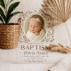Feiern Sie den besonderen Tag Ihres kleinen Mädchens mit dieser eleganten Taufveranstaltung im Acrylstil. Mit einem beigen, gewebten Hintergrund, einem sanften braunen botanischen Rahmen und Platz für ein persönliches Foto ist dieses Design perfekt für eine moderne boho-Taufe. Anpassbar mit dem Namen Ihres Babys, den Taufdetails und den UAWG.