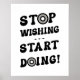 Dieses kühne, dynamische Design ermutigt Sie, Träume in die Realität umzusetzen, mit der auffallenden Botschaft "Stopp Wishing, Start Doing!". Der spielerisch inspirierte Schriftart mit zielartigen Kreisen verleiht dem Raum ein dynamisches und entschlossenes Ambiente, das sich perfekt für alle Bereiche eignet, die eine gewisse Motivation benötigen. Eine lustige Mischung aus Launen und Fahren, es ist eine tägliche Erinnerung, vorwärts behalten. Dieser Ausdruck ist perfekt für ein Zuhause-Büro oder einen Workout-Platz geeignet und bringt eine motivierend Touch in Ihre Umgebung. Ideal für Freunde oder Kollegen, die eine neue Herausforderung annehmen oder diesen zusätzlichen Schub benötigen!
