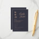 Die Modern Navy und Rose Gold Wedding Details Card ist die perfekte Ergänzung zu Ihrer Hochzeitsbriefingsuite. Mit einem beeindruckenden marinen Hintergrund und eleganten Goldakzenten der Rose bietet diese Karte den Gästen unverzichtbare Informationen in elegantem und modernem Design. Es wurde als Ergänzung zu anspruchsvollen Hochzeitsthemen konzipiert und bietet stilvolle Typografie und viel Platz für Details zu Unterkünften, Anleitungen oder zusätzlichen Veranstaltungsinformationen. Diese Karte sorgt dafür, dass Ihre Gäste sich gut vorbereitet fühlen und gleichzeitig eine Touch Luxus zu Ihrer Hochzeitssuite hinzufügen.