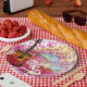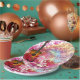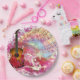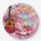 Dieser Pappteller, der eine Akustikgitarre mit Anmerkungen, Schmetterlingen und Farbe kennzeichnet, spritzt ist perfekt für die Bewirtung der Musik-bedingten Ereignisse.