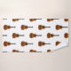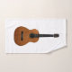 Musikalisches Badetuch-Set mit Akustikgitarre auf weißem Hintergrund. Handtuch und Waschlappen haben ein Single-Gitarrenbild, und das Handtuch hat ein gefliestes Gitarrenmuster auf weißem Hintergrund. Eine angenehme Ergänzung zur Badezimmerdekoration.