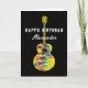 Farbenfrohe Akustik-Gitarren-Kunstwerke in funky psychedelischen, lebendigen Pop-Kunstfarben auf schwarz, um den Gitarrenspieler in Ihrem Leben zu feiern. Diese lustige, farbenfrohe Gitarre mit Retro-70er-Typografie personalisierte Geburtstagskarte ist ideal für Teenager, die das Instrument und Gitarrenmusik Liebhaber lernen, sie zelebriert die Energie und Vielfalt dieses wunderbaren Musikinstruments. Die perfekte individuell gestaltbare Geburtstagskarte für Gitarristen, Musiker und Musikliebhaber. Original-Kunstwerk von Catherine Sweetman