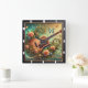 Akustische Gitarre Umrahmte Blume und Schmetterlin Quadratische Wanduhr