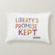 Im Design des T - Shirt steht der Satz "Das Versprechen der Freiheit Behalten" in fett gedruckten, farbigen Buchstaben. Die Farben sind lebendig und patriotisch und sorgen für eine visuelle Wirkung. Die Anordnung der Briefe ist dynamisch und auffällig, was den Gesamtcharakter des Designs erhöht. Das Gesamtgefühl des Designs ist energisch, positiv und feierlich und vermittelt ein Gefühl von Stolz und Leistung.