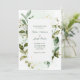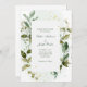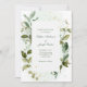 Diese trendigen und wunderschönen botanischen Einladungen mit üppigen, wasserfarbenen grünen Blätter und eleganten Imitaten goldenen Akzenten. Es gibt auch moderne Skriptkalligraphie und klassischen Text, und subtile grüne Aquarellsteine schmücken den weißen Hintergrund.