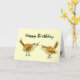Fun Cartoon hat Geburtstagskarte 2 Worte auf der Außenseite und sagt Happy Birthday. Im Inneren steht: Ein kleiner Birdie hat mir gesagt.
