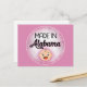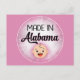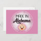 Diese lustige Postkarte zeigt ein niedliches, weißes Babygesicht, das auf rosa Untergrund "Made in Alabama" steht. Ideal für neue Babyankündigungen oder einfach nur zum Spaß.