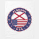 Abzeichen von Alabama mit Alabama-Flagge und US-Farbenflagge, abgerundete Form. Emblem von Alabama. Siegel von Alabama. USA Staaten Collection