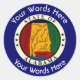Dieser Sonderaufkleber ist mit dem Alabama Great Siegel dekoriert, das mit einer Wortwahl über und unter angepasst werden kann, die es Ihnen erlaubt, ihn mit dem Namen einer Person, eines Ortes, einer Position usw. zu personalisieren.